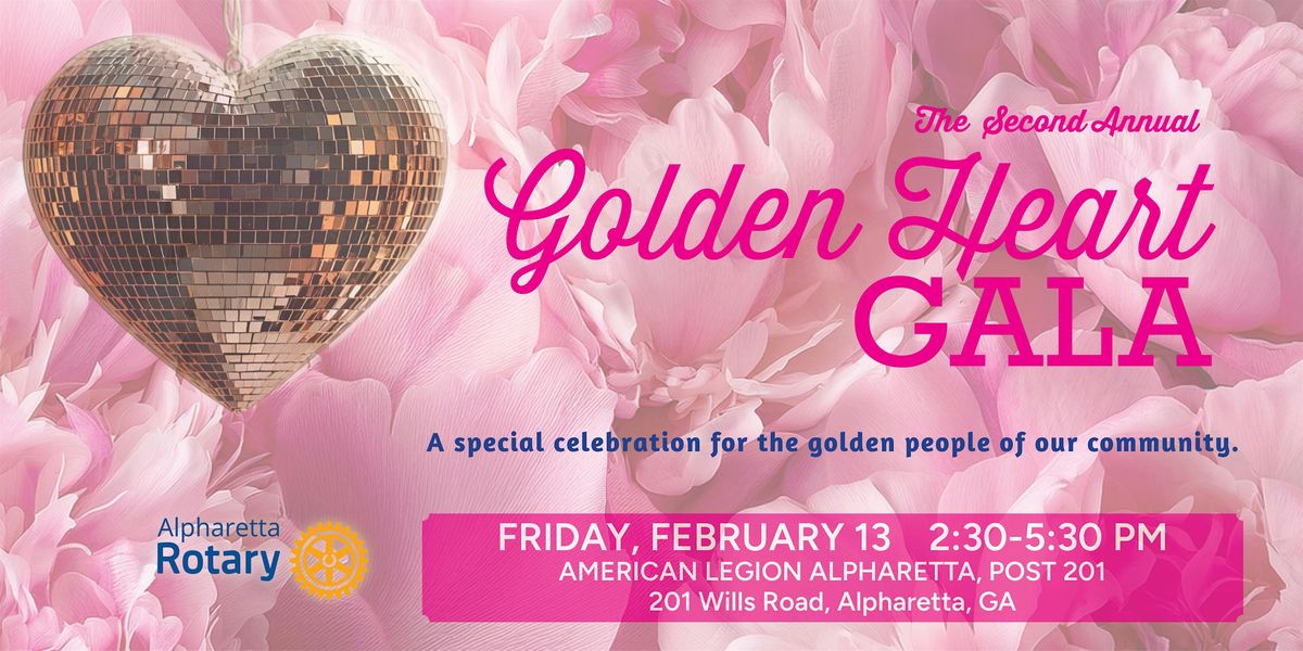 The Rotary Club of Alpharetta is excited to have you join us for the Golden Golden Heart Gala, an afternoon of fun and community for the "goldens" of our community.