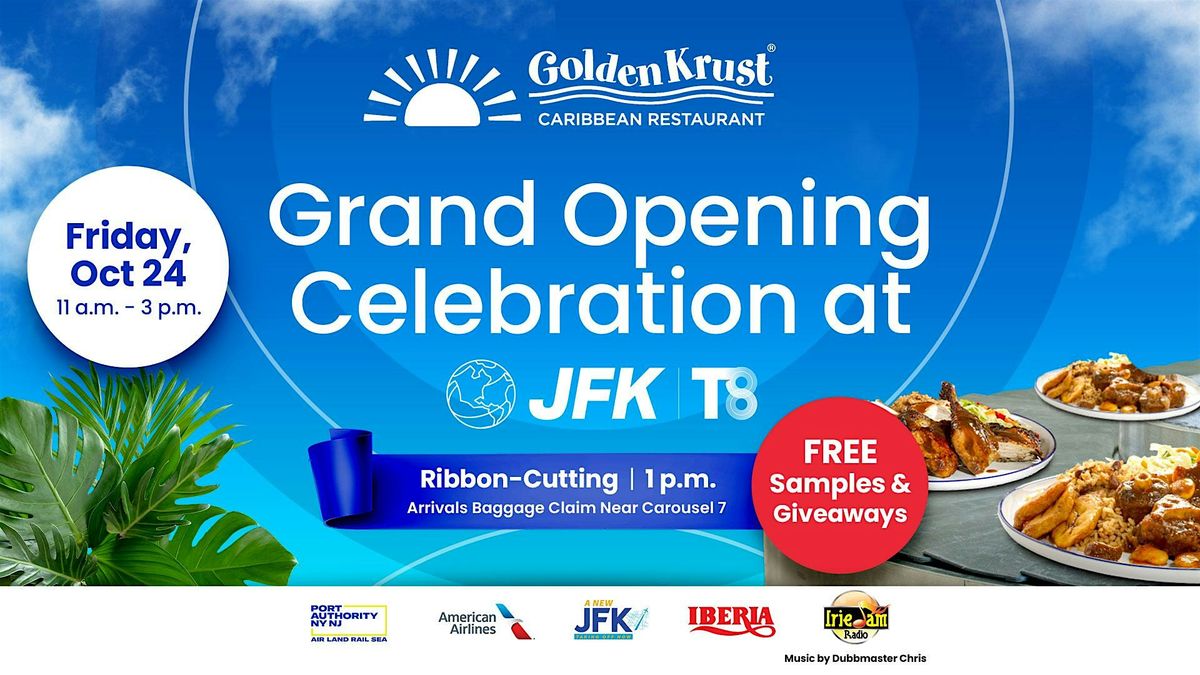 We’re proud to announce the Grand Opening Celebration of Golden Krust at John F. Kennedy International Airport, Terminal 8 (by Baggage Claim Carousel 7) — the very first Golden Krust restaurant inside the airport!
