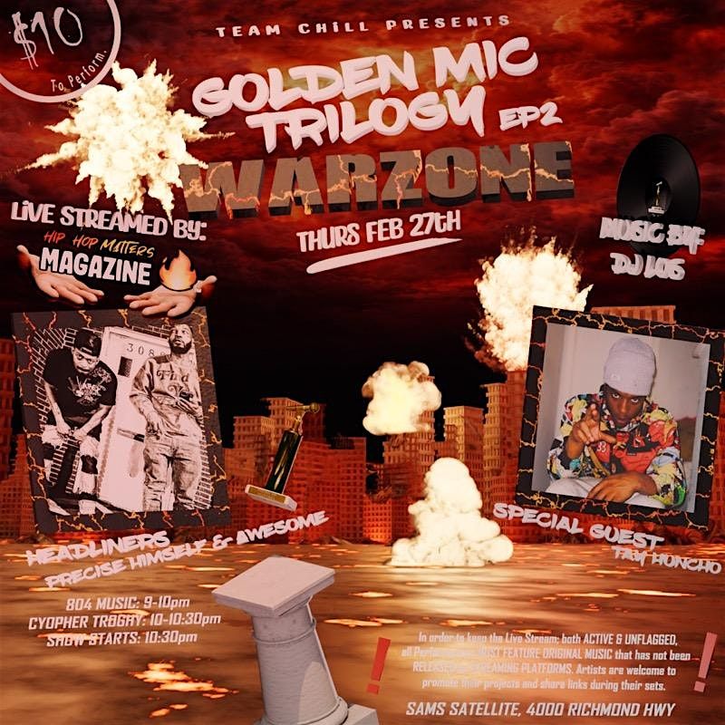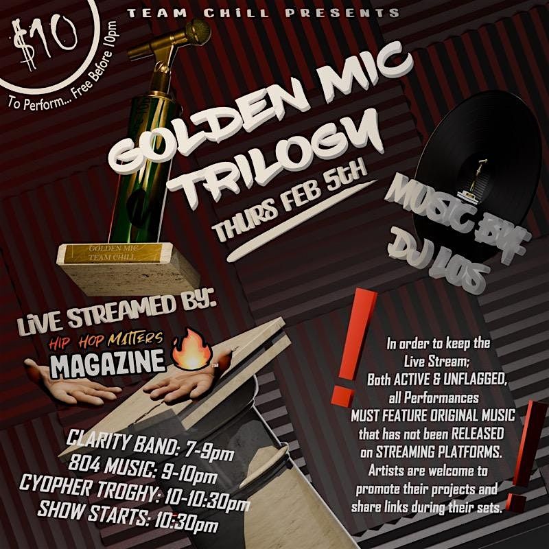 The longest running showcase in VA history is back. The Golden Mic Trilogy… come out and be apart of the movement and we writing the scriptAbout this Event
