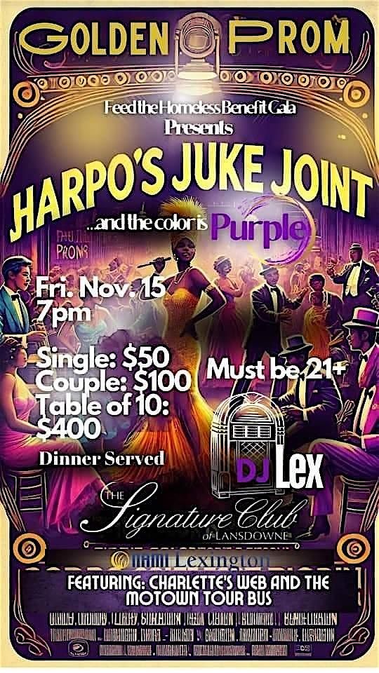 The 2024 Golden Prom presents "Harpo's Juke Joint: and the Color is Purple." This will be a spectacular night of food, fun, and live entertainment featuring Charlette's Web and the Motown Tour Bus.