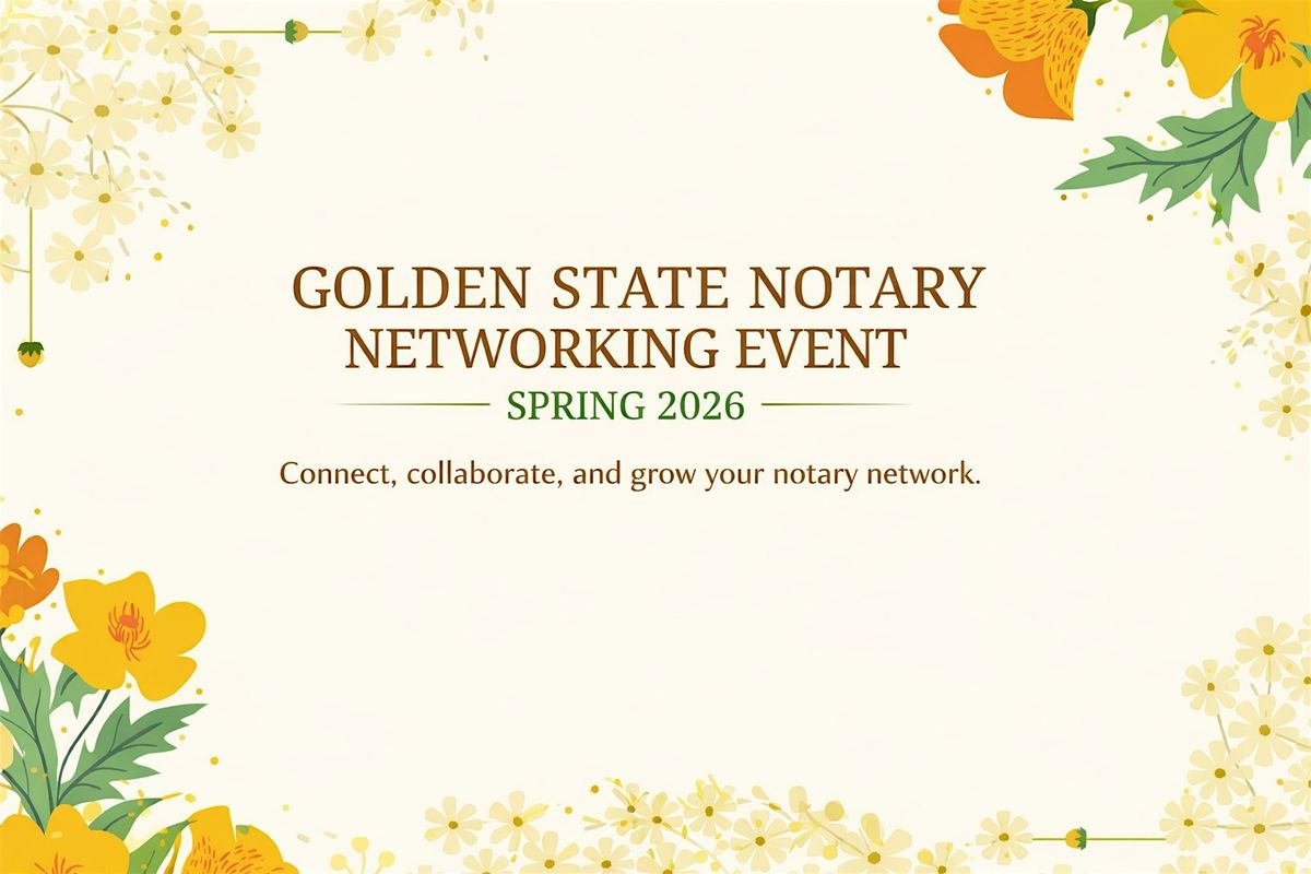 Join fellow notary professionals from across California for an afternoon of connection, collaboration, and community at the Golden State Notary Networking Event — Spring 2026.