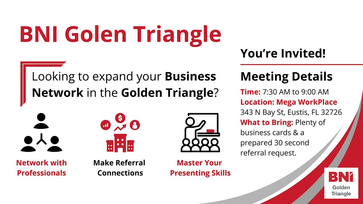 If you would like to check out our full membership list to see if you are eligable to join please visit us at: https://bniorl.com/fl-central-bni-golden-triangle/en-US/memberlist?chapterName=24426®ionIds=220,46275$isChapterwebsite