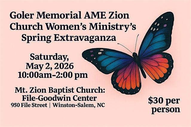 Join us for a joyful and inspiring Spring Extravaganza hosted by the Goler Memorial AME Zion Church Women’s Ministry. Attendees can look forward to a delicious lunch, engaging games, exciting prizes, and a lively auction. Whether you come to connect with friends old and new, enjoy spirited activities, or simply be refreshed in a warm and welcoming atmosphere, this event promises a memorable experience filled with laughter, sisterly fellowship, and encouragement.