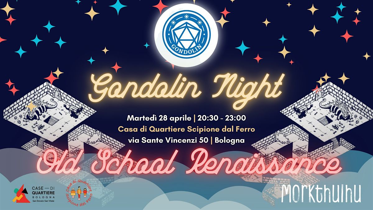 Le Gondolin Night sono lo storico evento di gioco di ruolo organizzato da Gondolin APS a Bologna, ora alla quarta Stagione e ospiti della Casa di Quartiere Scipione dal Ferro.