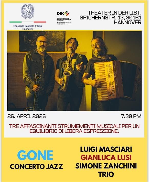 Il trio Lusi/Zanchini/Masciari (sassofono, fisarmonica e chitarra) presenta il suo ultimo album, GONE.