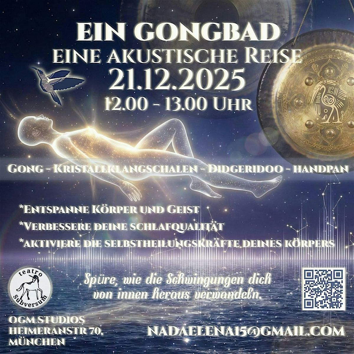 Tauche ein in die Welt der Klänge und Schwingungen – ein Gongbad ist eine besondere Form der Klangmeditation, bei der du von den kraftvollen, obertonreichen Klängen des Gongs umhüllt wirst. Während du entspannt liegst, breiten sich die Schwingungen des Gongs im Raum und in deinem Körper aus und führen dich in einen Zustand tiefer Entspannung und innerer Ruhe.