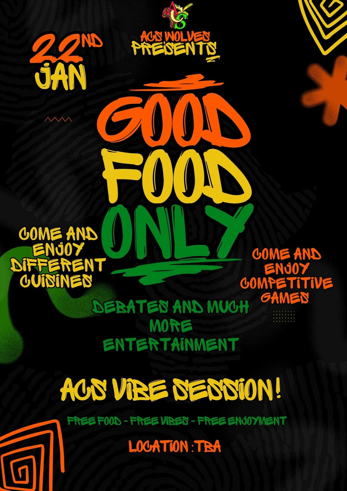 ACS WOLVES PRESENTS: GOOD FOOD ONLY – ACS VIBE SESSIONKick back and start the year right with ACS Wolves. This is a chilled social where it’s all about good food, good energy, and real connections.