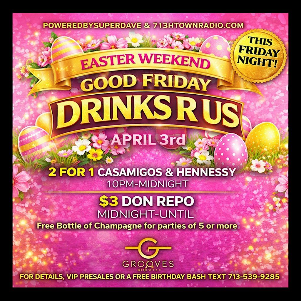 Get ready to amp up your Friday night at GROOVES! We're celebrating with an epic Easter bash featuring CasaMigos and DON Repo shots that'll keep the vibes high all night long.