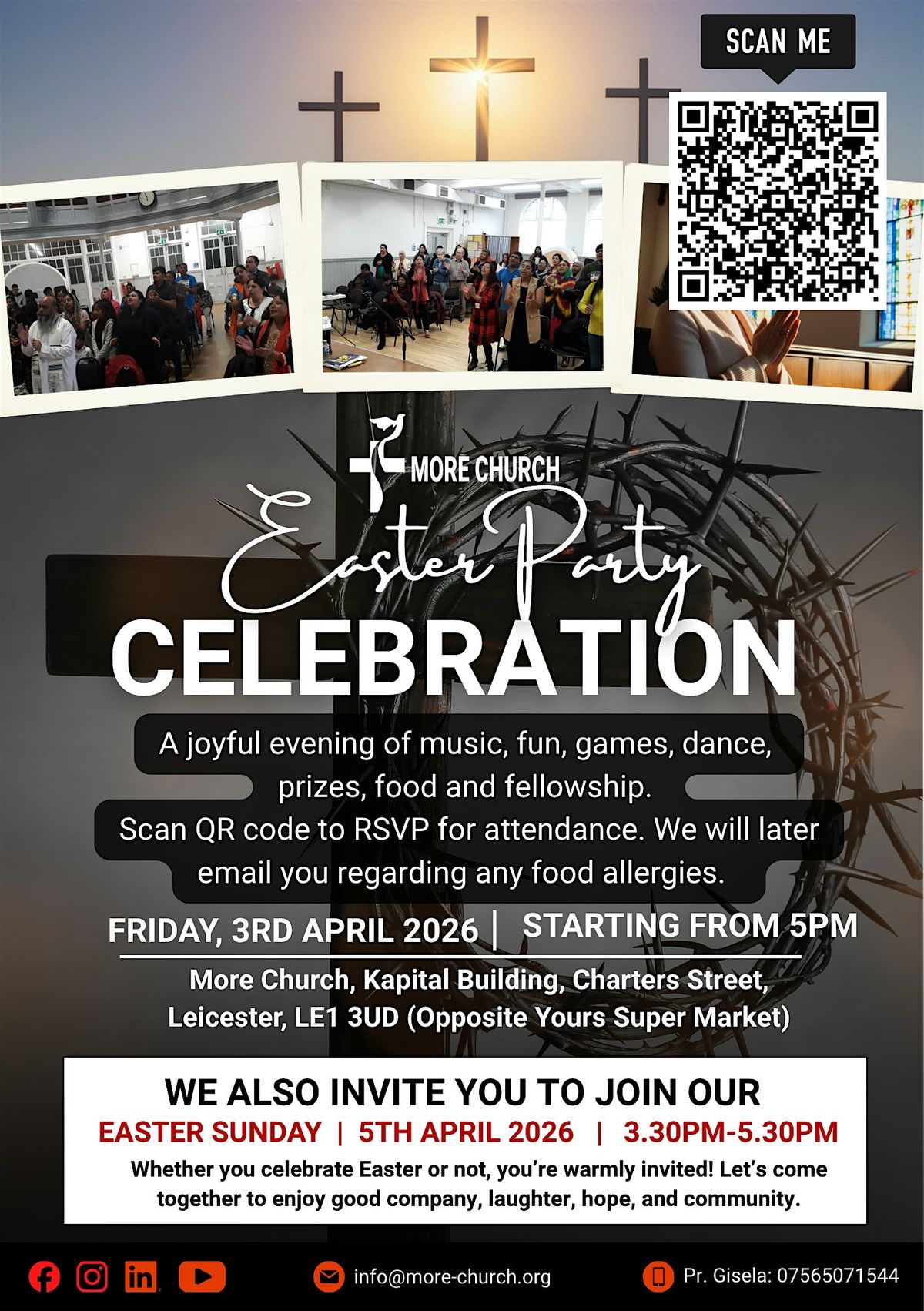 Join us in person for a fun-filled Good Friday Easter Party at More Church Leicester! It’s the perfect chance to celebrate, meet new people, and enjoy some great vibes together. Whether you're coming with family or friends, there's something for everyone. Don’t miss out on the laughs, music, and good times!