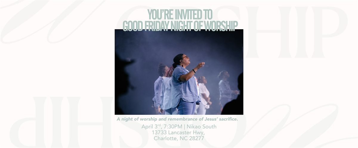 Start your Easter weekend with us at Good Friday Night of Worship at Nikao Church in Charlotte, NC. This special service is a time to pause, reflect, and remember the sacrifice of Jesus Christ through powerful live worship.