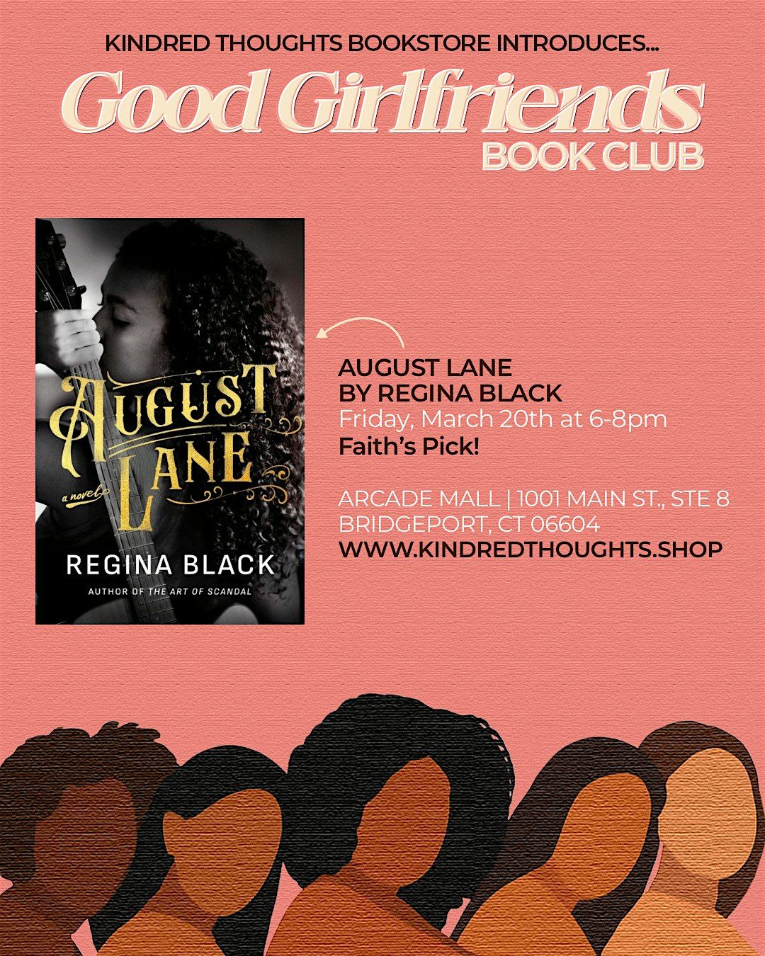 Join us on Friday, March 20th at 6pm for a fun night as we discuss Faith's pick, August Lane by Regina Black.