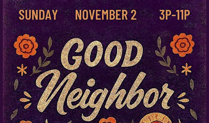 Join us for Good Neighbor, a Dia de Muertos block party celebration. We’re bringing the community together for a night of:🎧 Live DJs🛍️ Local vendors🍻 Craft drinks✨ Tooth gems🎨 Art installations