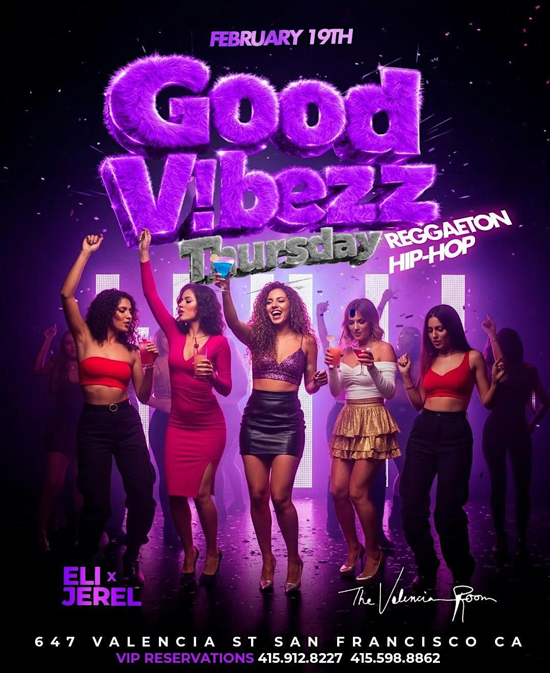 GOOD V!BEZZ THURSDAYS AT THE VALENCIA ROOM! Good vibes good drinks good music every Thursday night where all the beauty meet up 💃🏻🪩🥳