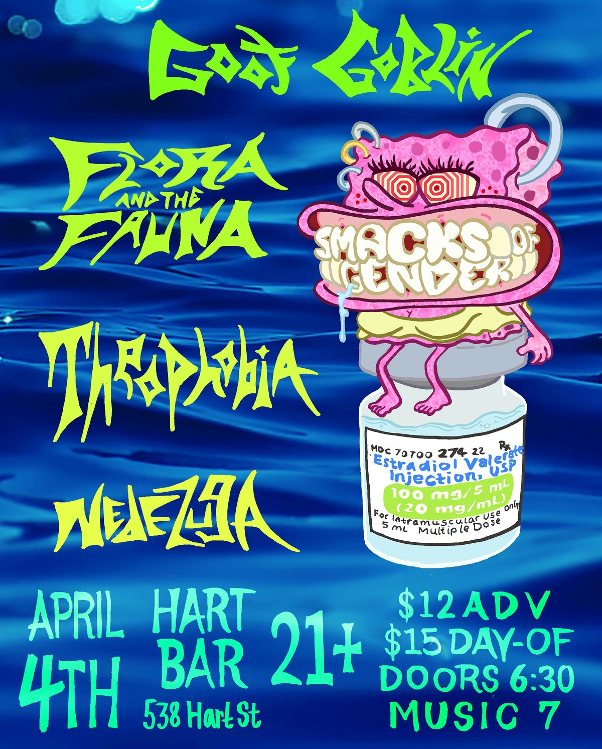 A musical performance featuring NY locals Goof Goblin, Theophobia, & Nedezuga, as well as Flora & the Fauna on tour from Richmond, VirginiaAbout this Event