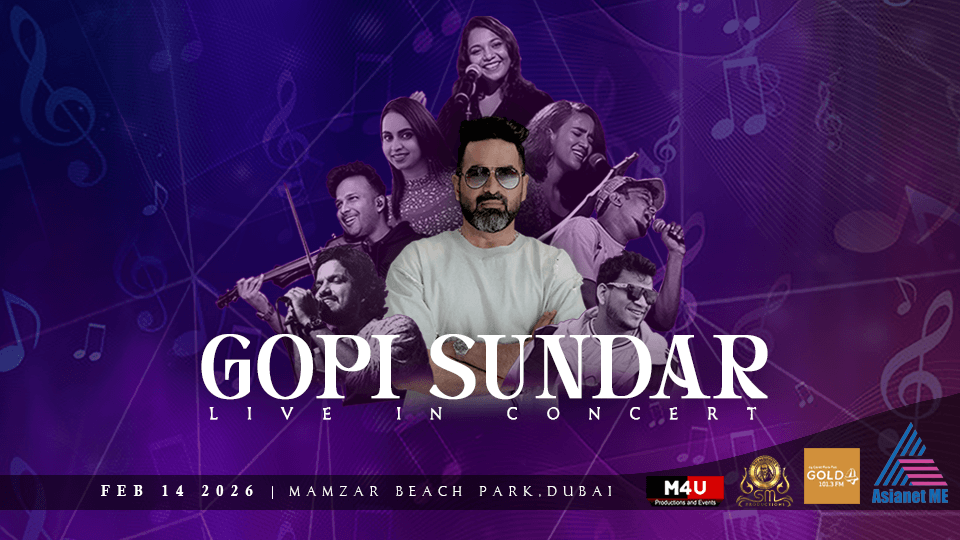 Get ready for an unforgettable musical night as Gopi Sundar, one of South India’s most celebrated music composers, brings his electrifying live band concert to Al Mamzar Park, Dubai on 14th February 2026.