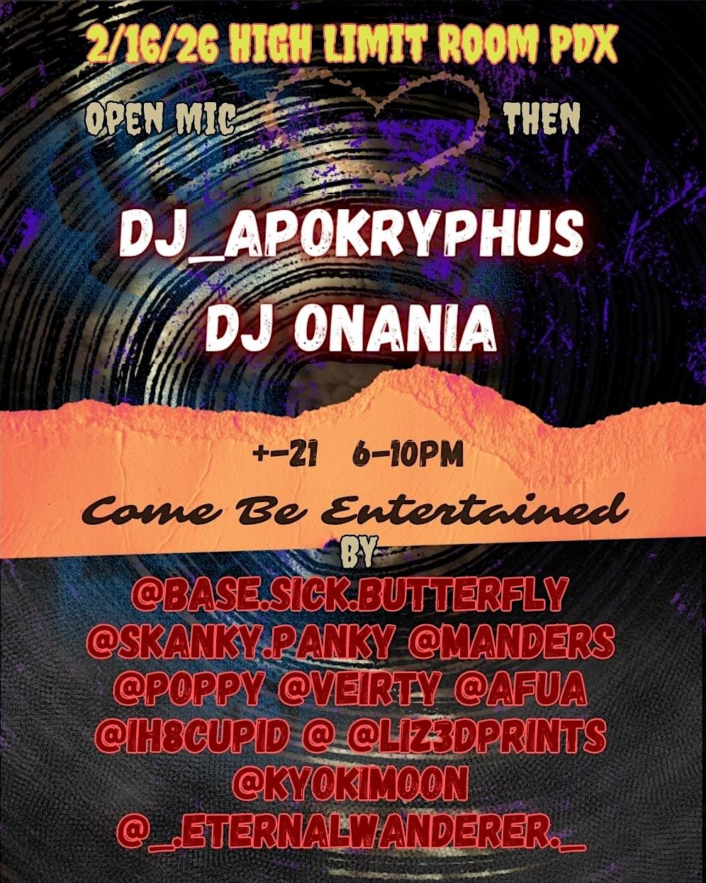 Info: Bring what you need to go on stage. Talent level will vary, begginers-pros welcome. We want to help you practice, inspire & get seen...if that's what you desire, come take the stage♡ **Mics and guitars will be provided - bring what you require** Lurk, express & watch local acts from the floor.