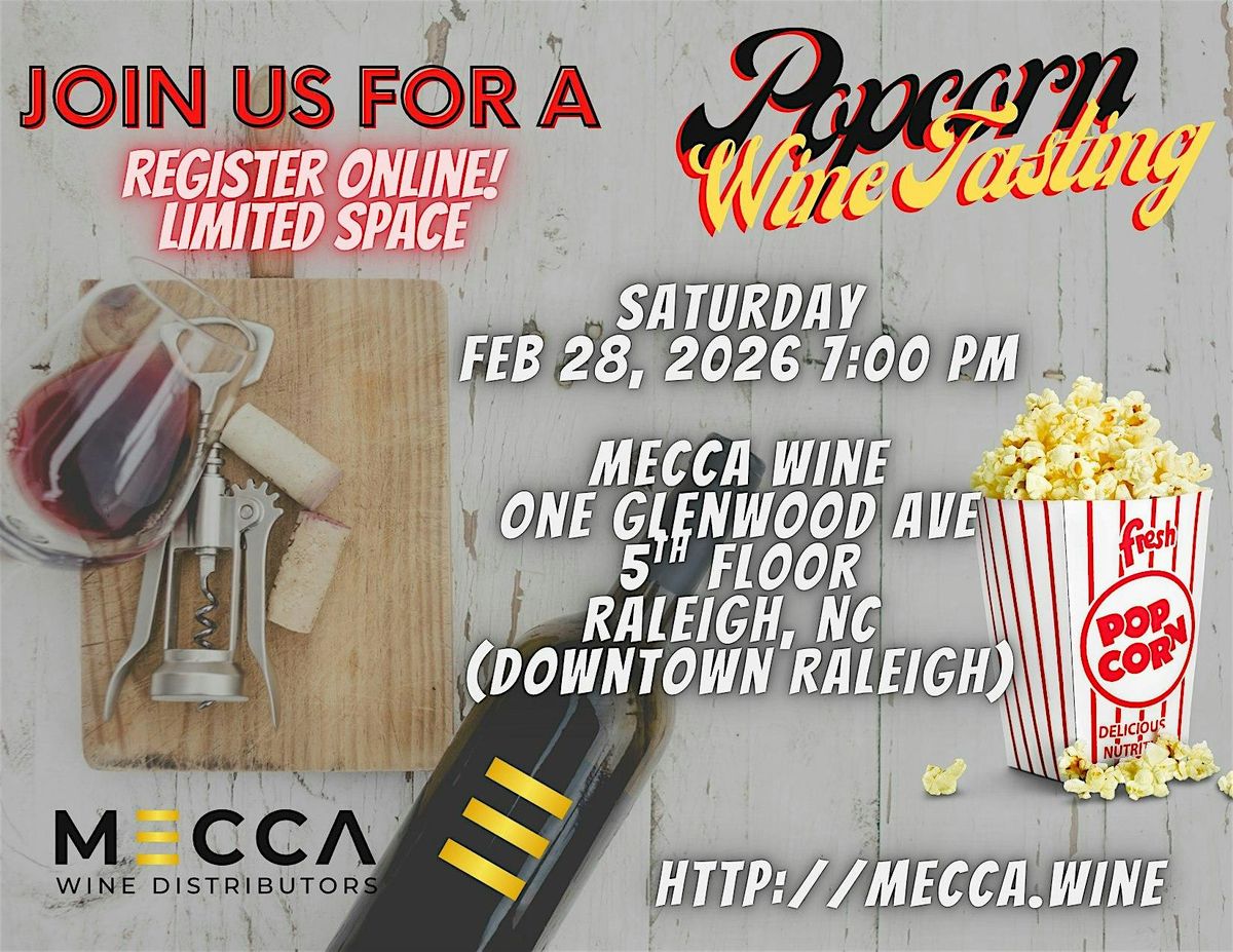 Come join us for an evening of fine wine, delicious popcorn, and fun. At our popcorn and wine tasting, you'll get a chance to sample seven incredible wines and discover how their different flavors and aromas are perfectly complemented by seven delectable gourmet popcorn flavors. We'll also be providing charcuterie boards to give you a chance to enjoy the perfect snack with your wine. Last but not least, we've got an easy but tasty dessert that will top off the perfect evening. Whether you're a newbie to the world of wine or an experienced connoisseur, this event is perfect for anyone 21 and above. Come join us and enjoy this delicious and fun event!