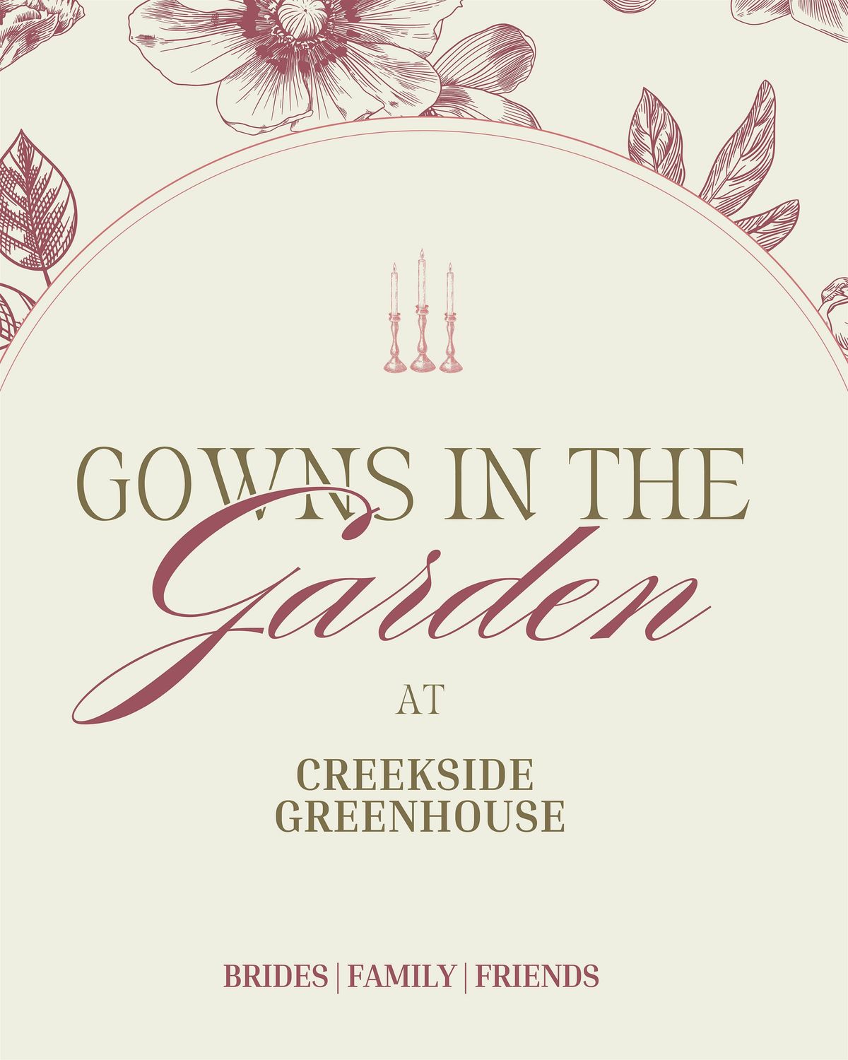 Join us in person for a fun and fashionable event for brides, soon to be brides, friends, family (really anyone!) at the beautiful Creekside Greenhouse! Tour the venue and get a taste of what your wedding could look like at Creekside while enjoying: