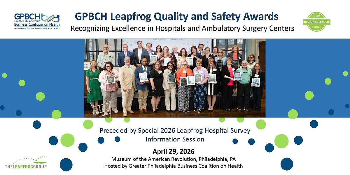 Hosted by the Greater Philadelphia Business Coalition on Health (GPBCH), this program highlights outstanding performance in quality and safety based on results from the 2025 Leapfrog Hospital Survey, Ambulatory Surgery Center (ASC) Survey and the 2025 Hospital Safety Grades.