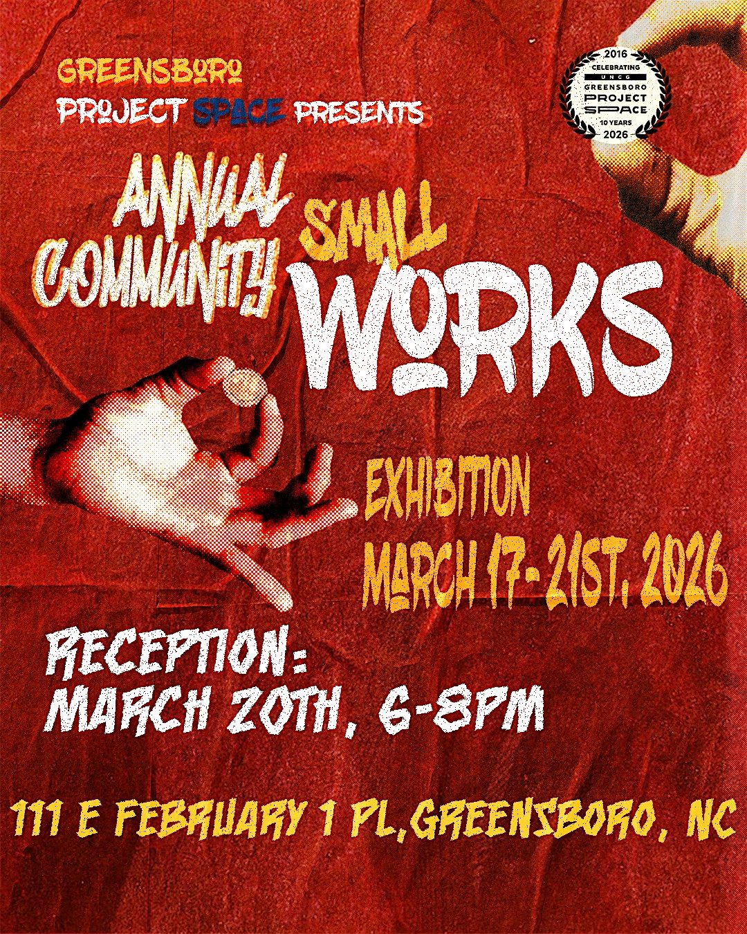 Greensboro Project Space is pleased to announce its third annual community exhibition that features works by our local and regional artists. Through this exhibition we explore the depth and range of creative practices that flourish in Greensboro and beyond. We encourage community members to express themselves in any way, activating our space with playful contrasting dimensions and diverse visual approaches, across many artistic mediums.