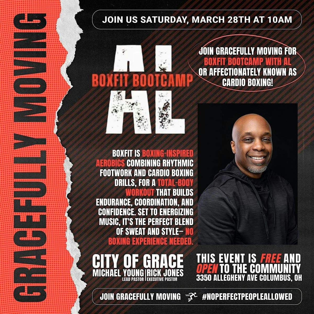Join Gracefully Moving for an energetic aerobic workout combining boxing and Dance to provide a full body cardio workout.