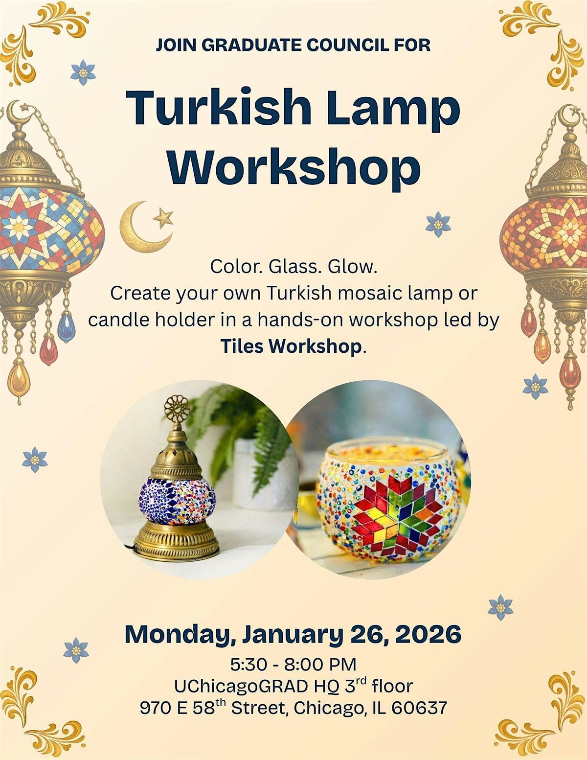Join the Graduate Council Community Initiatives for a Turkish Lamps Workshop, a cozy, hands-on evening where creativity meets tradition ✨