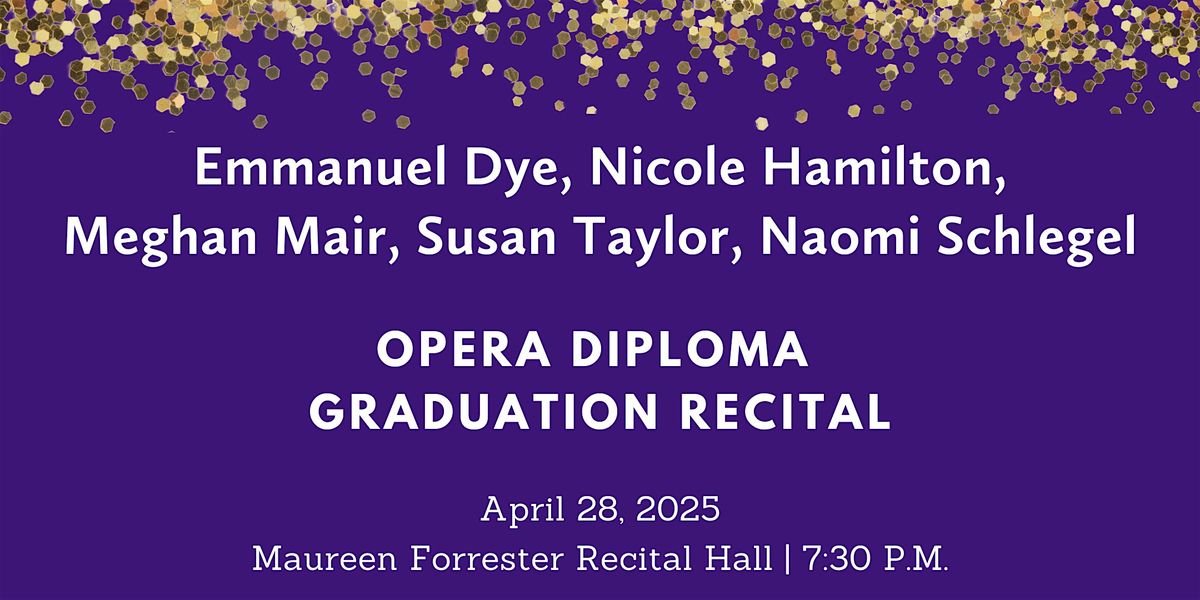 Join us for a celebration of our graduating students Emmanuel Dye, Nicole Hamilton, Meghan Mair, Susan Taylor, and Naomi Schlegel, talented vocalists who will showcase their final performance for their Laurier diploma.