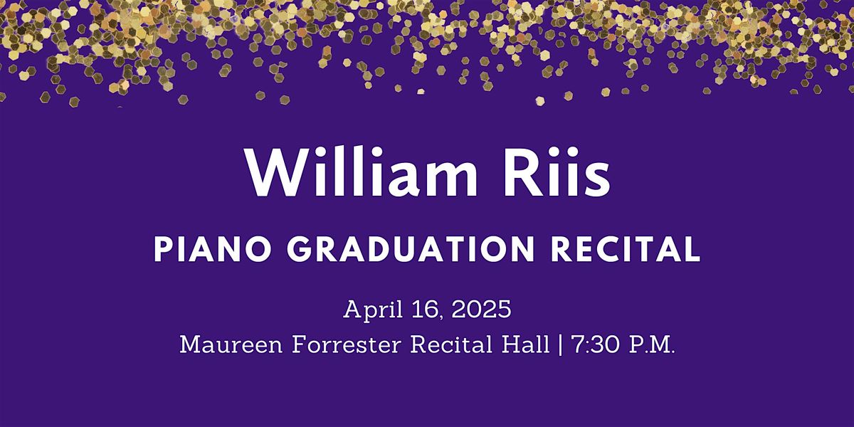 Join us for a celebration of our graduating student William Riis, a talented pianist who will showcase their final performance for their Laurier degree or diploma.