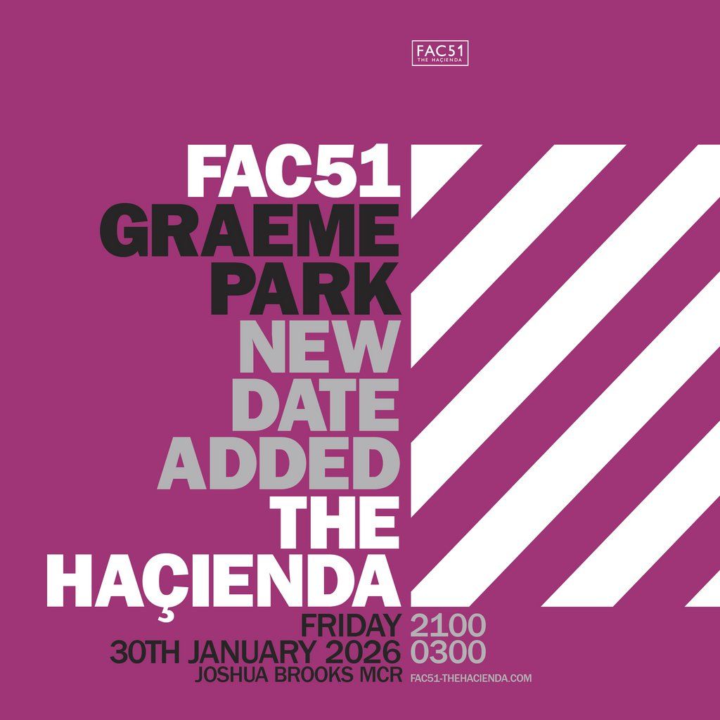 Graeme Park - Haçienda All Night Long at Joshua Brooks, Manchester on January 30th 2026. Second date added due to demand!Artists