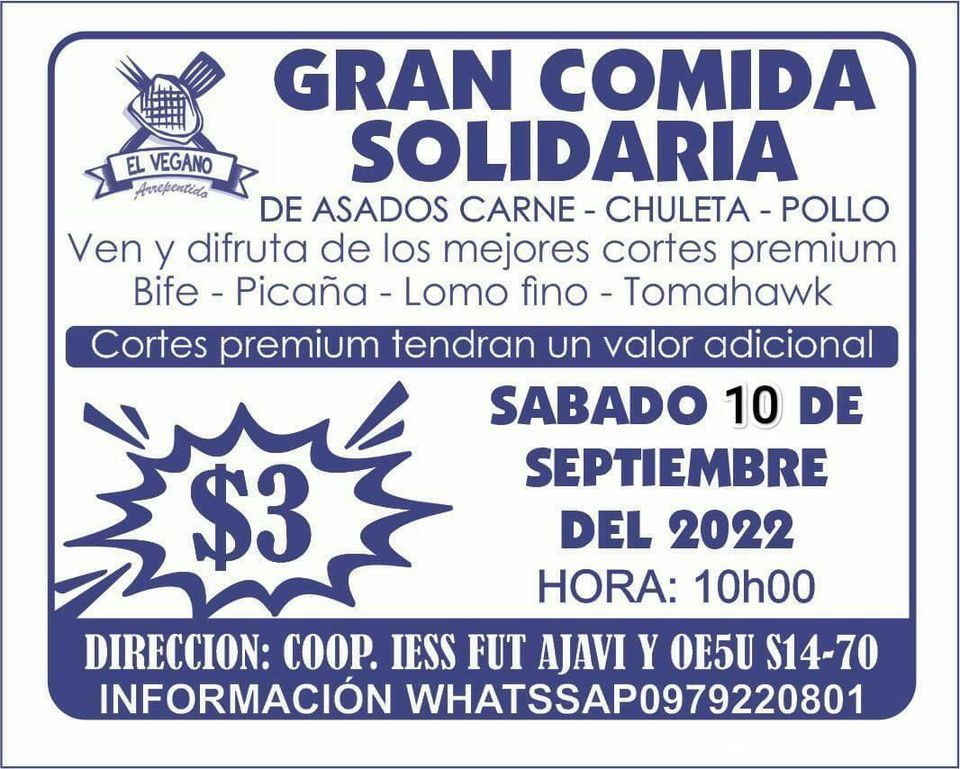 Gran comida y rifa SOLIDARIA SABADO 10 DE SEPTIEMBRE DEL 2022