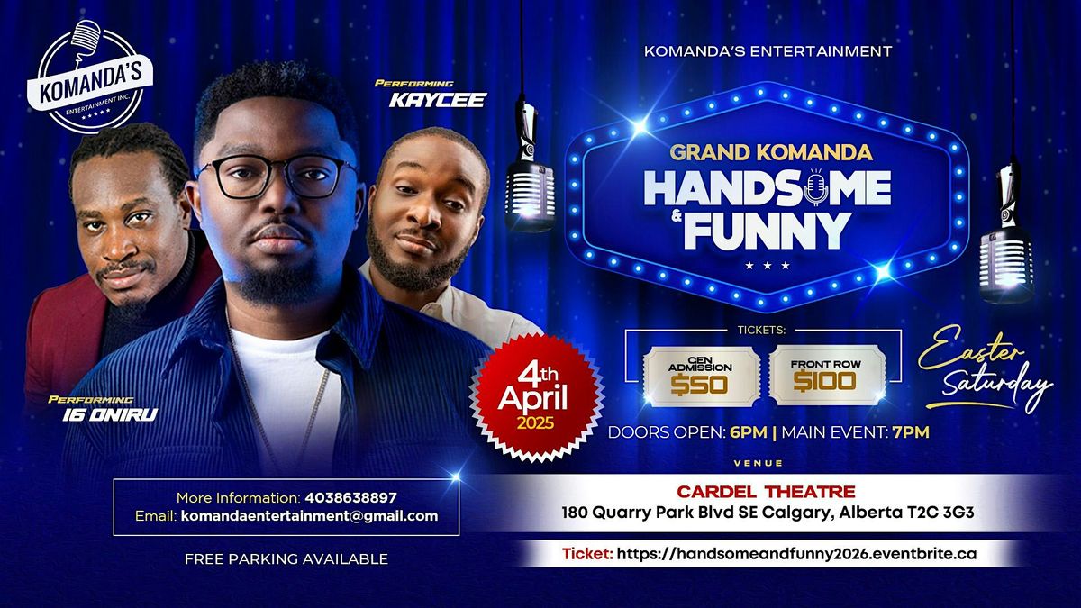LIVE STANDUP COMEDY FROM CALGARY'S ACE COMEDIAN GRAND KOMANDA ALONGSIDE HIS HILARIOUS FRIENDS IN A SHOW TAGGED HANDSOME AND FUNNY.