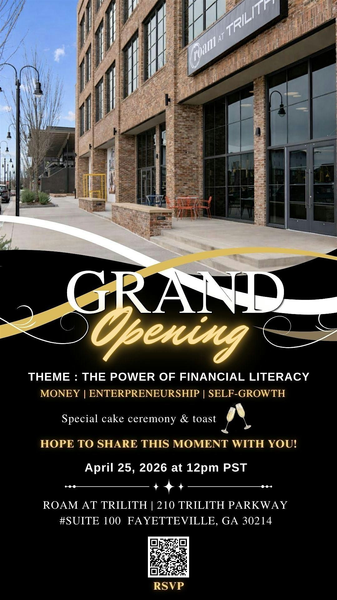 THEME : THE POWER OF FINANCIAL LITERACY - We are launching a new location grand opening, join us for free information, cake, and toast! We are excited to be a part of this community at Roam at Trilith!
