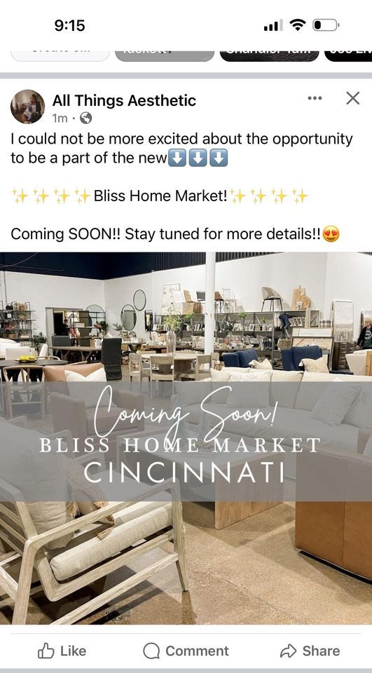 We are so excited to be in the home stretch of getting ready for the big day and we want to see you, your family and friends there to kick off the opening of BLISS HOME MARKET (CINCY)!