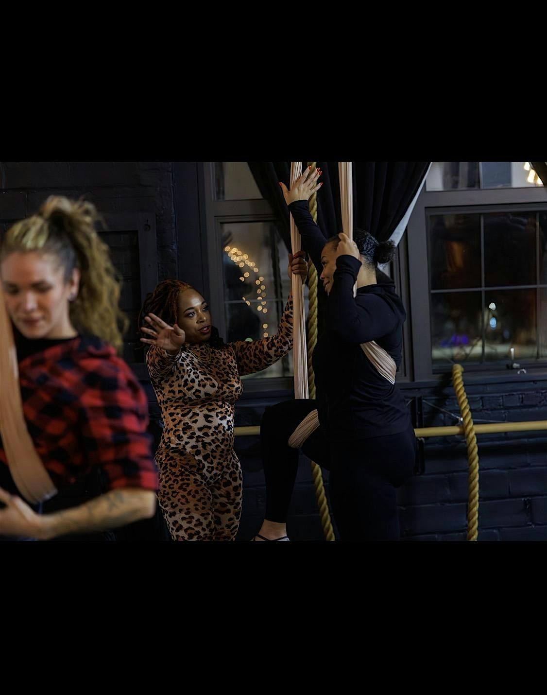 No experience needed. You’ll learn foundational aerial movements, build strength and confidence, and experience what it feels like to fly — all in a supportive, empowering environment.