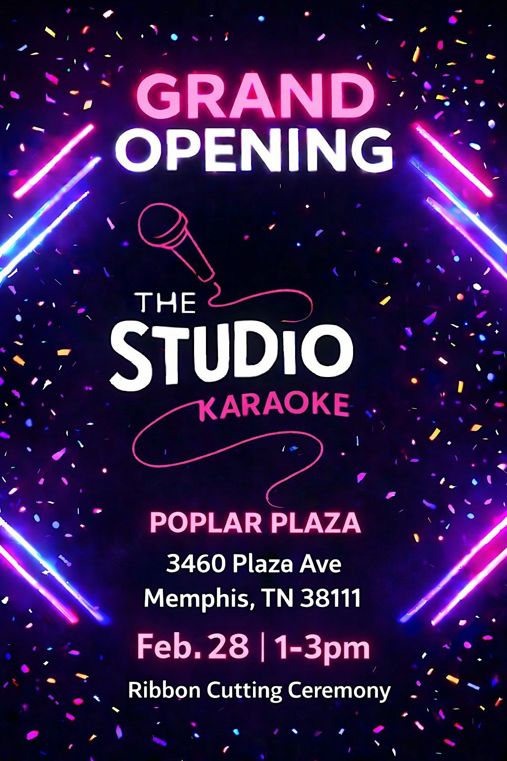 Join us as we celebrate the grand opening of Memphis's only private-suite karaoke venue, designed to bring more joy to Memphis through music and community! Enjoy light refreshments, tours, and entertainment, and as we come together for a fun-filled, family-friendly event uplifting entrepreneurship by Memphians for Memphians in the heart of the city.