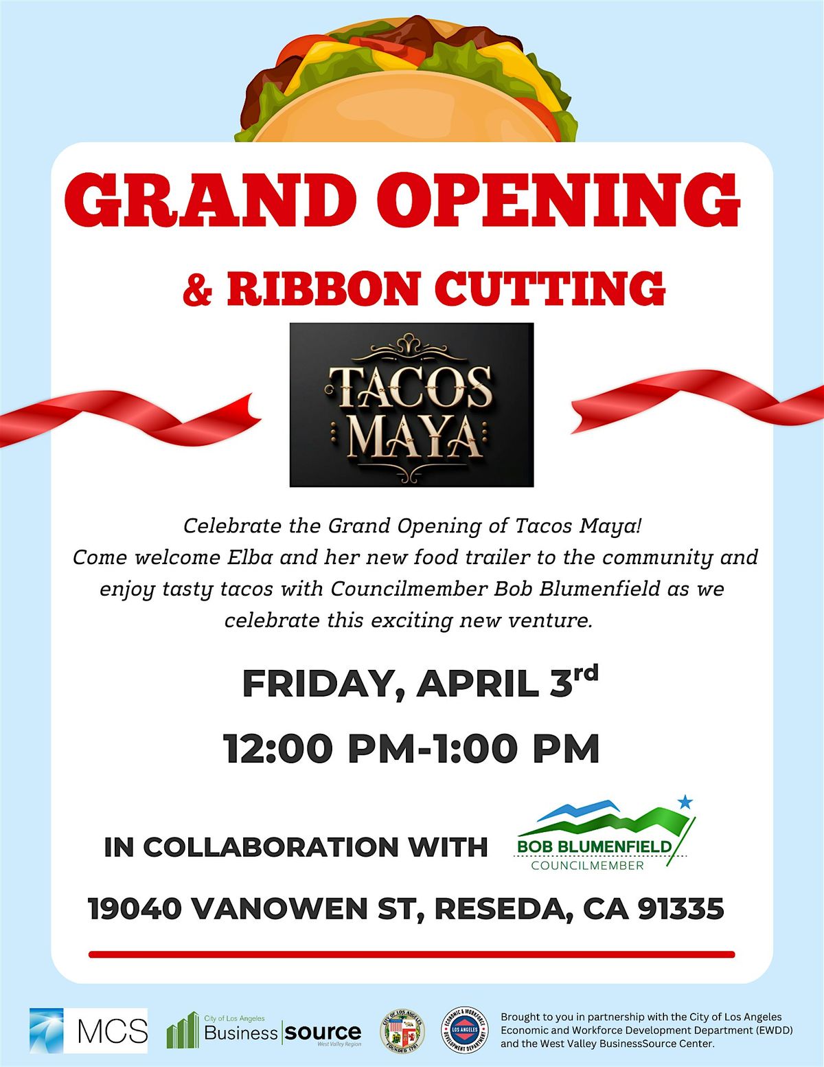 Come celebrate the Grand Opening & Ribbon Cutting of Tacos Maya with Councilmember Bob Blumenfield!About this Event