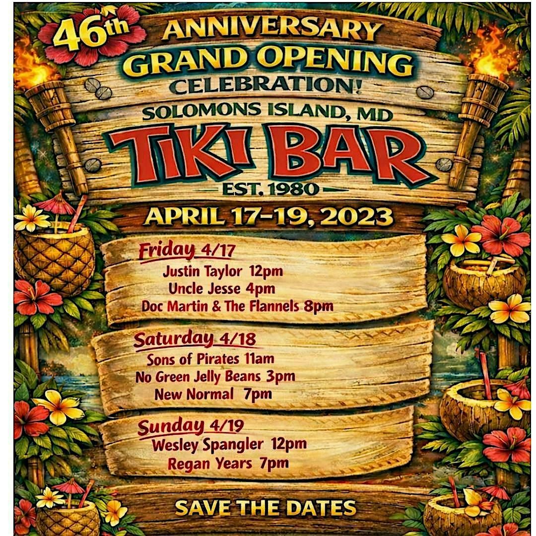 Come join us at Tiki Bar Solomons Island on April 17, 2026 at 11:00 AM to celebrate this special occasion. Get ready for a day filled with fun, music, and great vibes!
