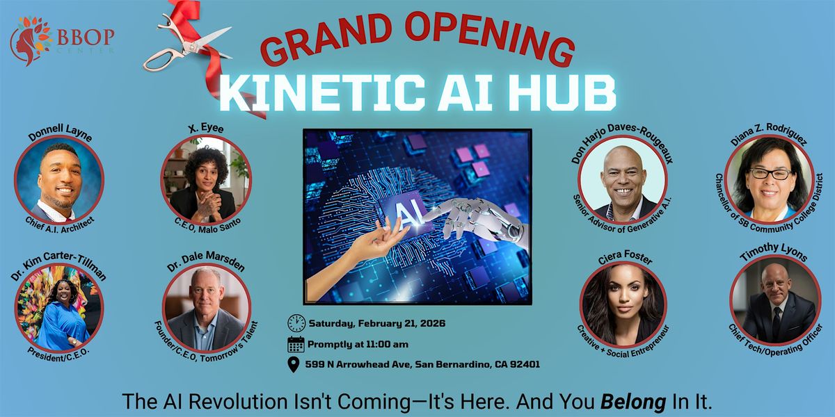 The Kinectic AI Hub is an applied innovation and training center focused on advancing AI literacy and the practical use of generative and agentic AI. This Hub supports education and workforce development by helping individuals and organizations move from awareness to action in the responsible deployment of emerging technologies. Entrepreneurs, small businesses, and non-profit organizations gain access to hands-on training and real-world AI project development-enabling them to move from curiosity to capability and apply AI for growth, efficiency, and opportunity.