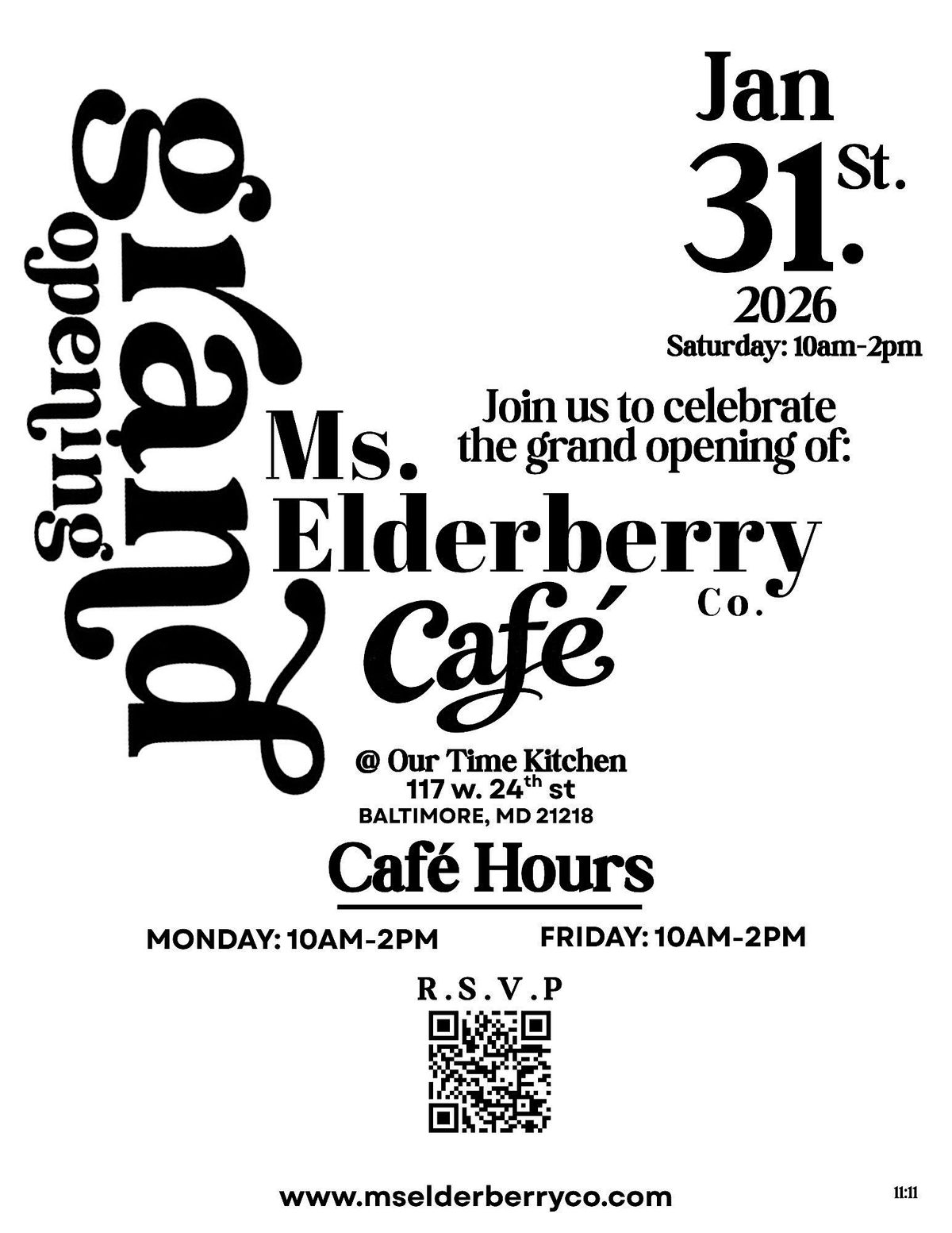 Join us on Friday, January 31st, from 10:00 AM–2:00 PM, as we celebrate the opening of Ms. Elderberry Co. Café -- a modern, plant-forward wellness café rooted in intention, wellness, and community.