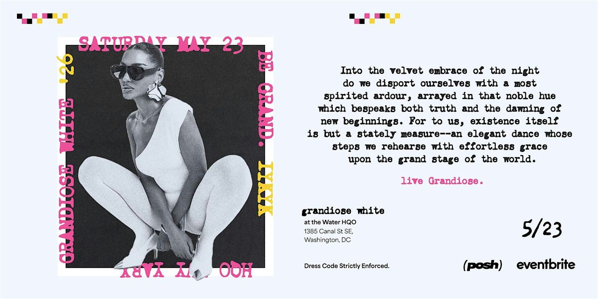 Step into an elevated all-white waterfront affair overlooking the stunning Anacostia River. Grandiose White brings together elegance, music, and culinary excellence for a sophisticated Memorial Weekend celebration in one of Washington DC’s most scenic venues.