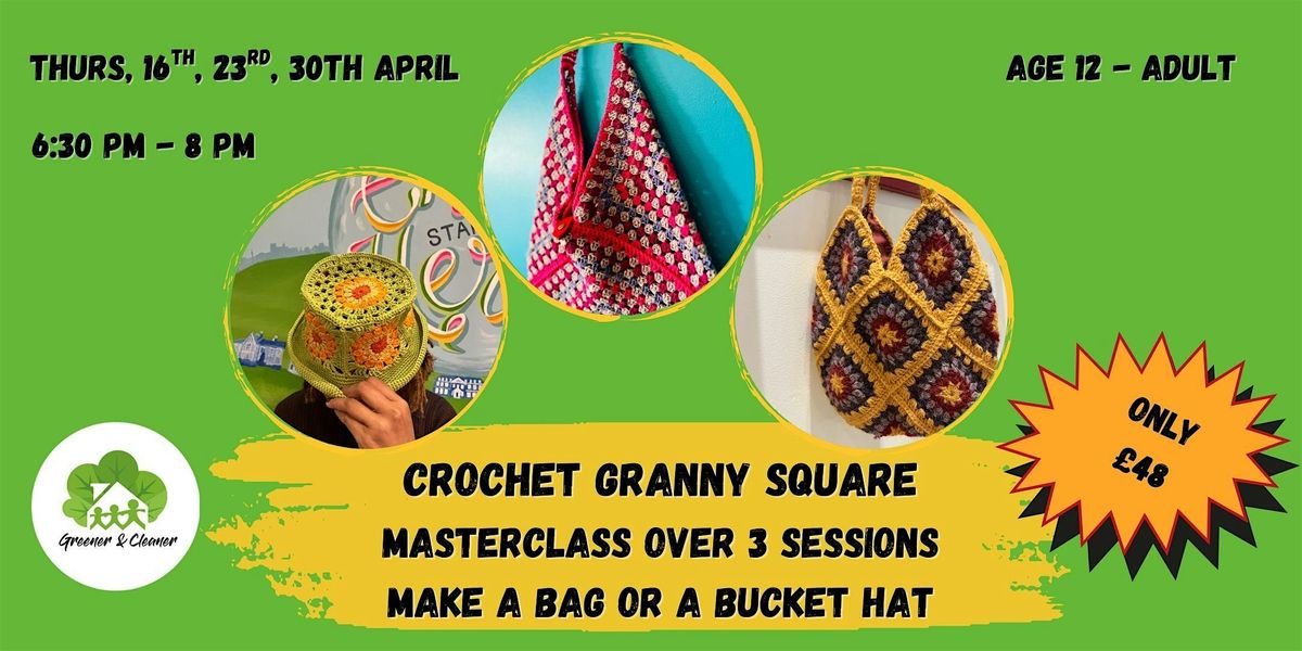 Welcome to the Granny Square Masterclass! Join us over 3 sessions on Thurs 16th, 23rd & 30th April, at 18:30 at The Hub, The Glades, Bromley for a fun and creative evenings of crochet.