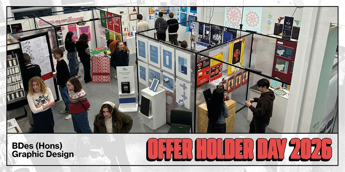 Info: Offer holders will take part in a design workshop in the main graphic design studio (B22), whilst parents/guardians grab a coffee with Matt Sinclair, our subject group leader.