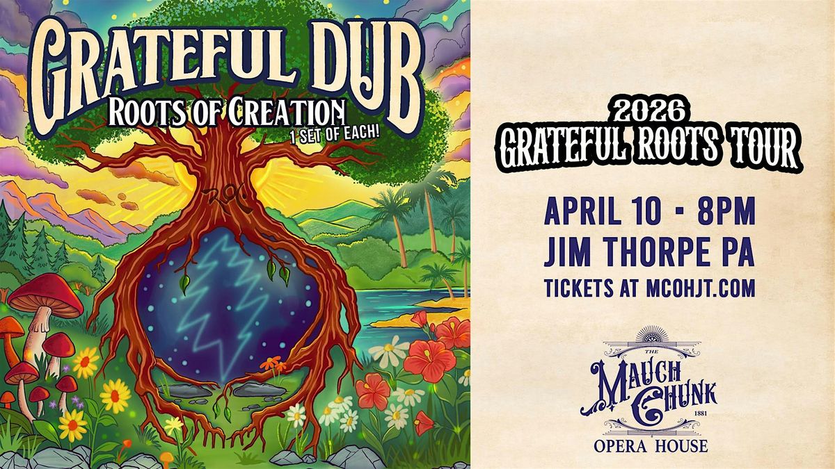 Jim Thorpe, PA - Get ready for an epic night with GRATEFUL DUB & Roots of Creation, where the classic vibes of the Grateful Dead meet the smooth rhythms of reggae! This in-person event is all about laid-back grooves, good vibes, and timeless tunes reimagined with a reggae twist. Whether you're a Deadhead or just love chill sounds, this tribute will have you dancing and feeling the love all night long. Don’t miss out on the fun — come vibe with us!