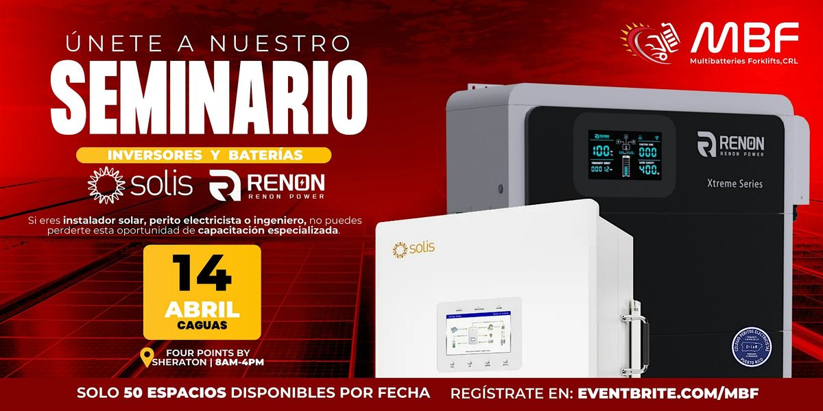 Seminario de Inversores Solis y Baterías Renon por Multibatteries Forklifts para instaladores, peritos e ingenieros. Solo 50 espacios.About this Event