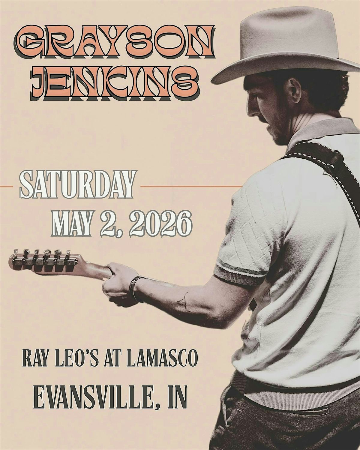 Muhlenberg County, Kentucky native Grayson Jenkins live at Ray Leo's at Lamasco in Evansville, IN. With local phenom D.R. Bridges & moreAbout this Event