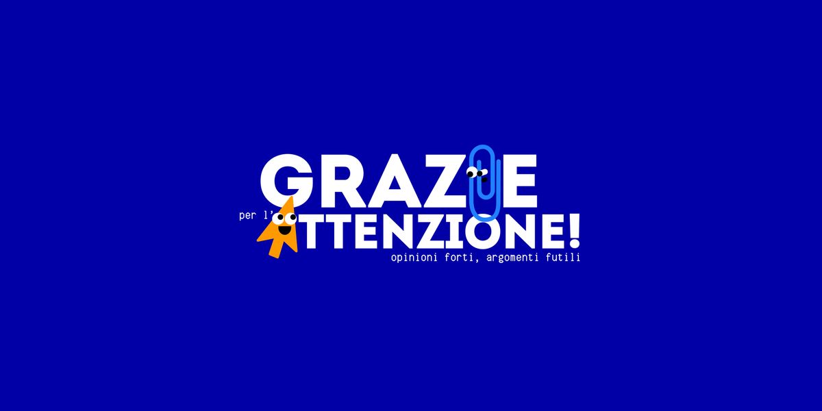 Grazie per l'Attenzione è una serata in cui voterete tra due argomenti assolutamente futili che abbiamo scelto per voi.