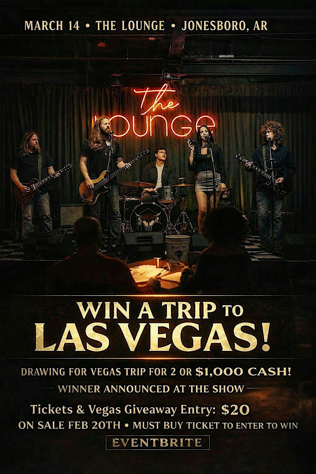 Join Greasy Tree on March 14 at The Lounge in Jonesboro, AR for a high-energy night of live music — and your chance to WIN A VEGAS TRIP!