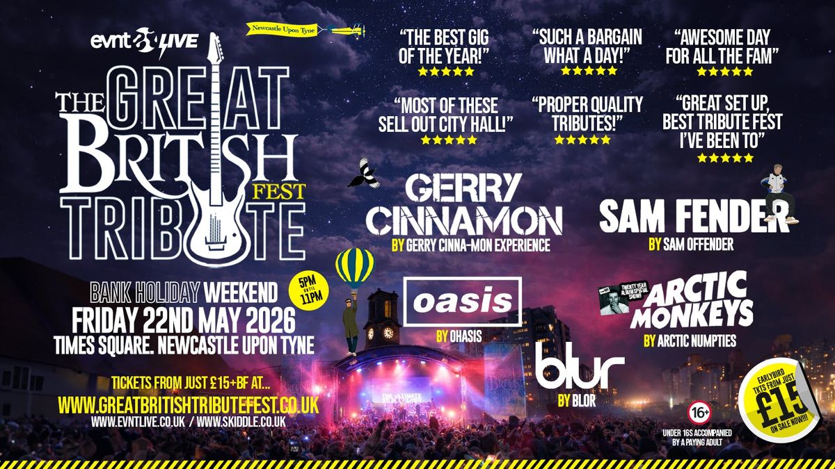 đĽđ¸đ¤Â THE GREAT BRITISH TRIBUTE FEST 2026 đ¤đ¸đĽNewcastleâs Ultimate Indie & Brit Rock Singalongđ  Friday 22nd May 2026 â Bank Holiday Weekendđ Times Square, Newcastle Upon Tyneâ°Â 5PM â 11PM