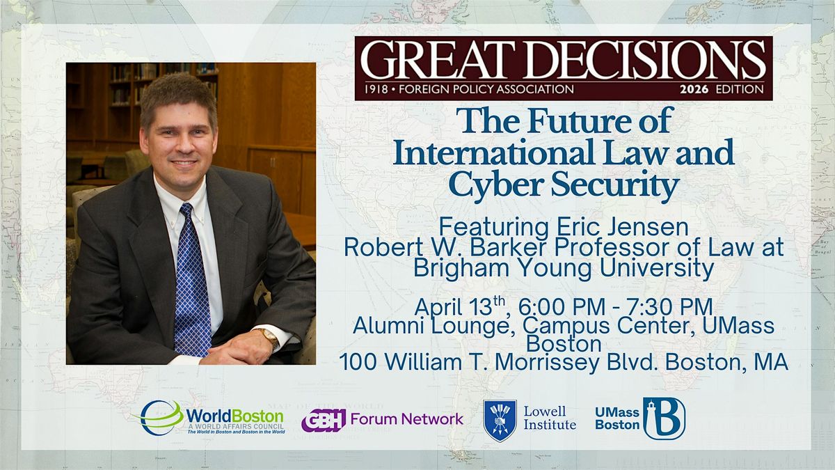 As global power shifts and emerging technologies outpace regulation, what does the future hold for international law—and for the security of the digital domain? From state-sponsored cyber operations to ransomware attacks on critical infrastructure, cyber threats are redefining national security and testing the limits of existing legal frameworks. Can international law evolve quickly enough to govern cyberspace, deter malicious actors, and protect democratic institutions? What norms, alliances, and enforcement mechanisms will shape the next era of global cooperation? Join us for a forward-looking conversation on the future of international law and cybersecurity in an increasingly complex and connected world.
