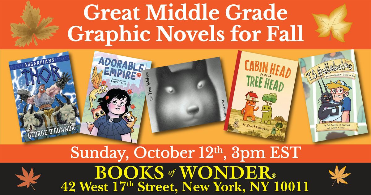 These graphic novels are the perfect reads for the new season! Join us in-store as we welcome SCOTT CAMPBELL, creator of , VICTOR FUSTE and ZACK ROSENBERG, co-authors of , PETER MCCARTY, creator of , GEORGE O'CONNOR, creator of , and LAURA TERRY, creator of . You just can't miss these wonderful stories!